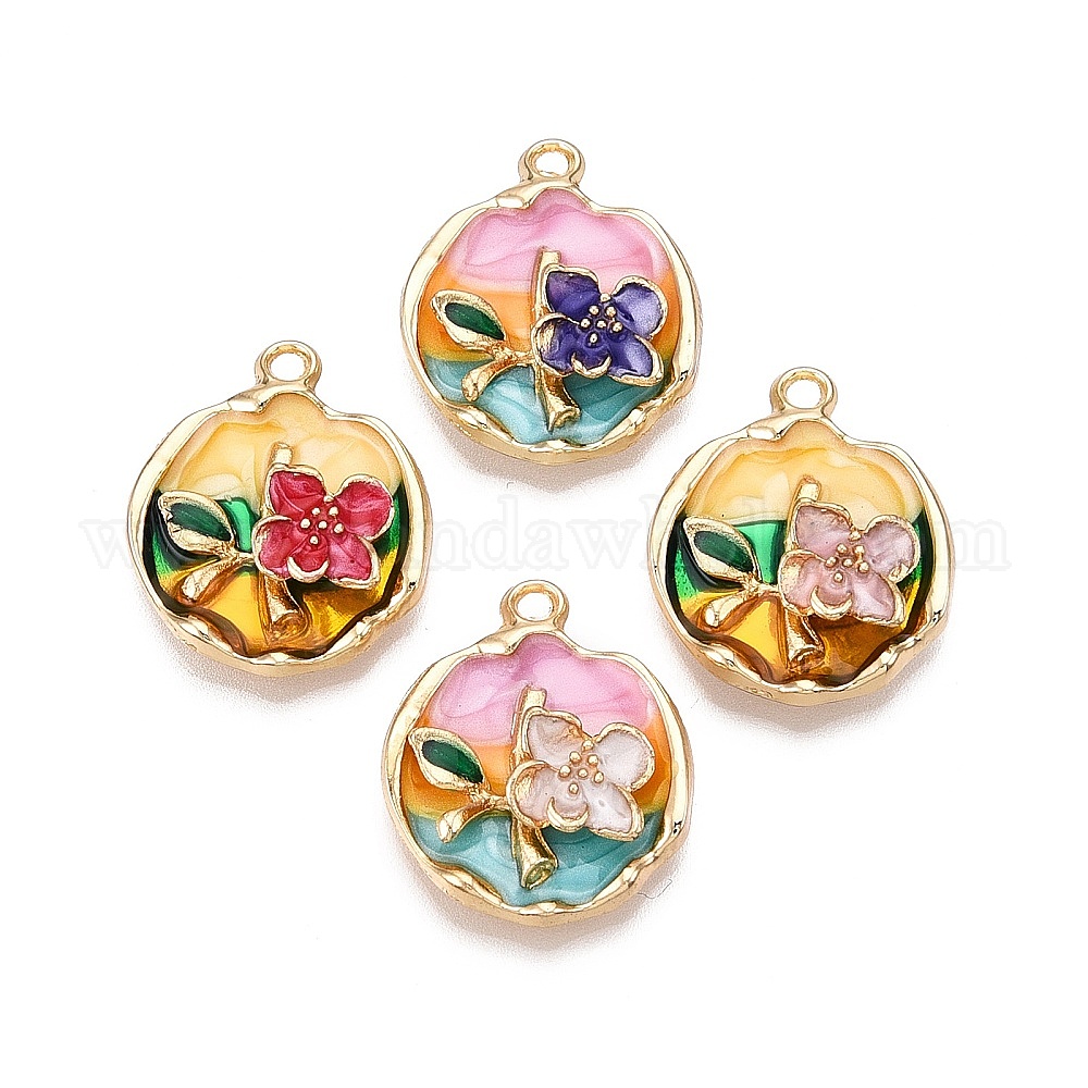 Стойки обшивки сплава эмали подвески, без кадмия, без никеля и без свинца, золотой свет, плоская круглая с подвеской в виде цветка