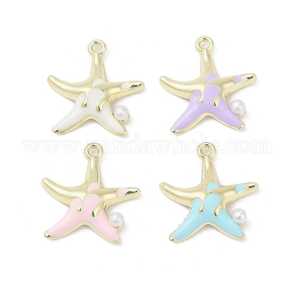Подвески из эмали и сплава, с abs имитационными жемчужными бусинами , стойки покрытие, без кадмия, без никеля и без свинца, очарование морской звезды, золотые
