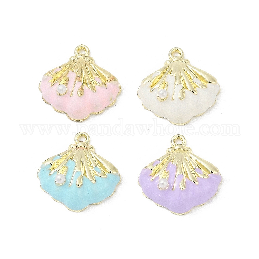 Подвески из эмали и сплава, с abs имитационными жемчужными бусинами , стойки покрытие, без кадмия, без никеля и без свинца, шарм из ракушек, золотые