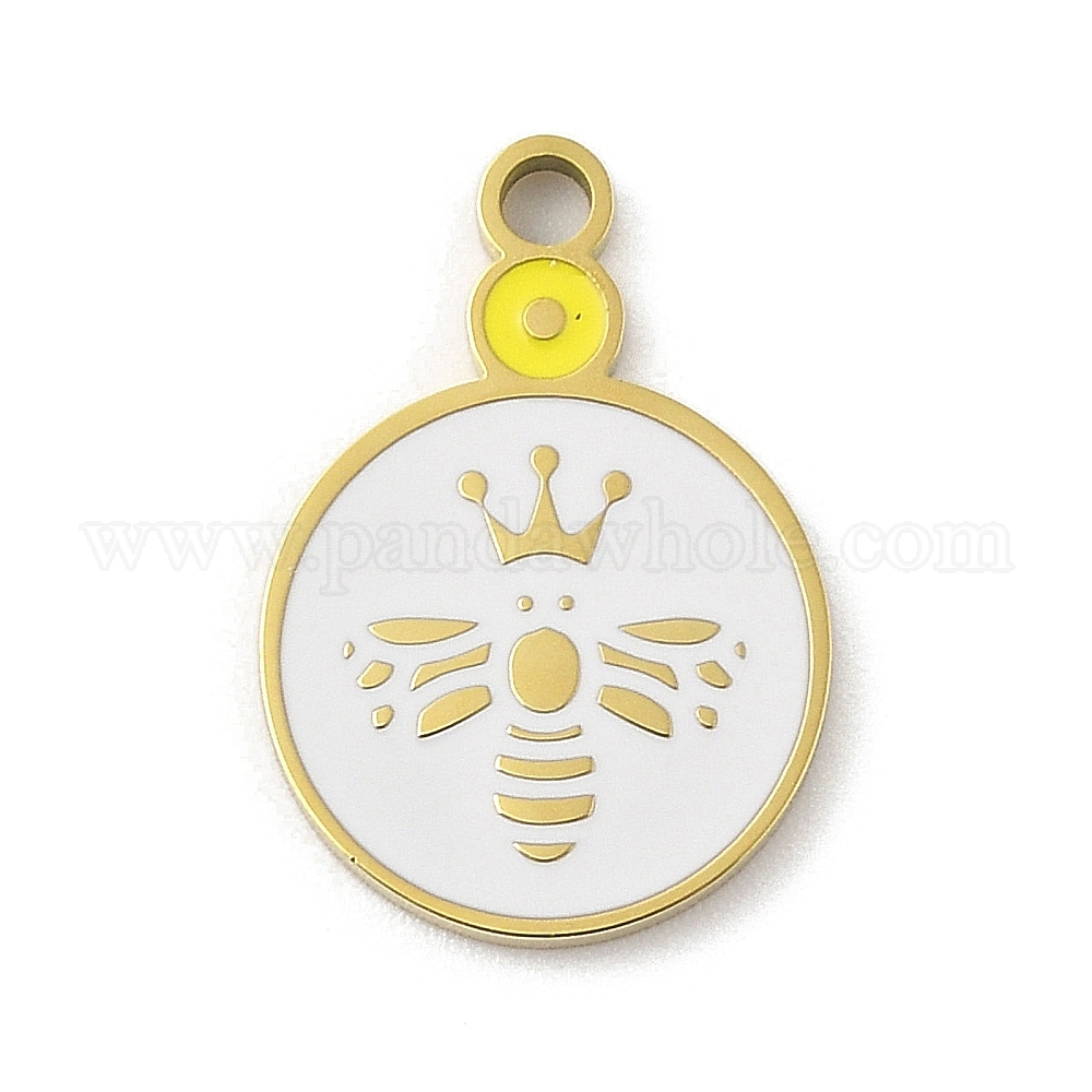 304 нержавеющей стальной эмали подвески, лазерная резка, плоский круглый с подвеской в виде пчелы и короны, реальный 18 k позолоченный