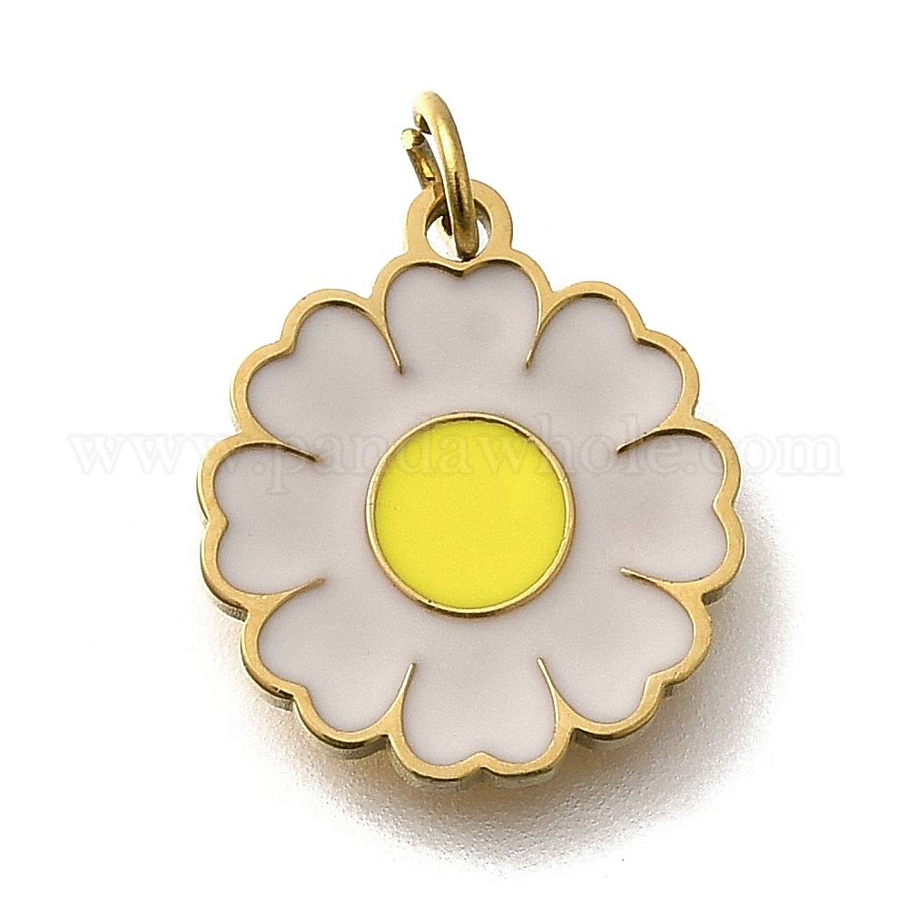 304 из нержавеющей стали шармы эмали, с целью перехода в кольце, цветочный шарм, реальный 18 k позолоченный, ионное покрытие (ip)