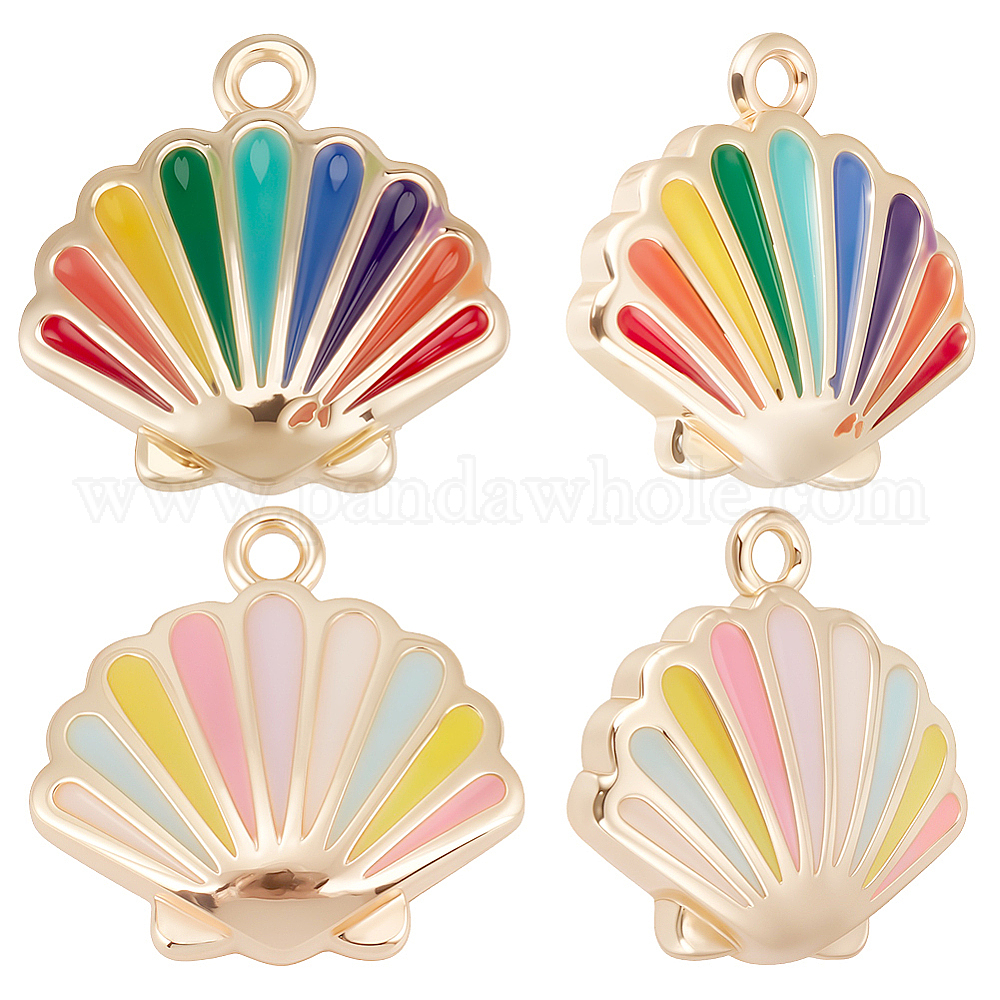 16 шт. 2 цвета латунные эмалевые подвески, без никеля , форма морского гребешка, реальный 18 k позолоченный