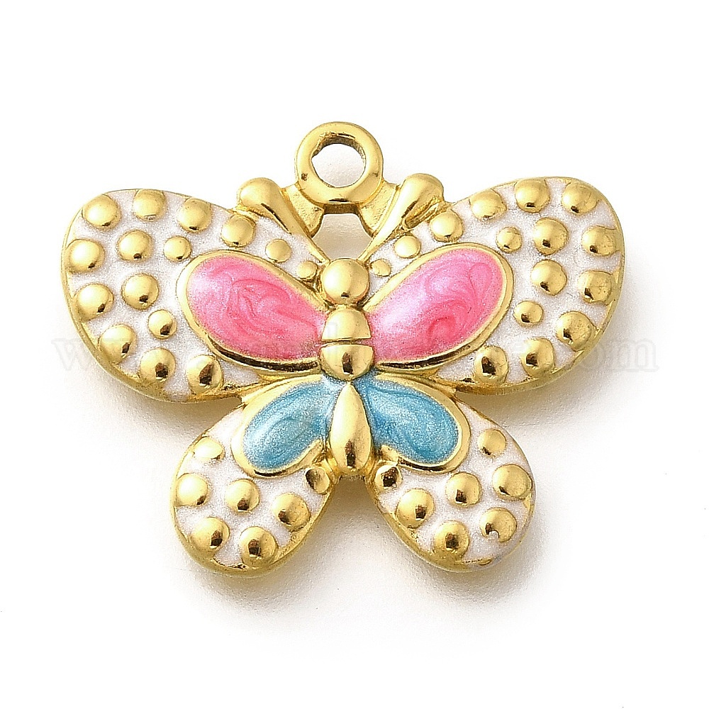304 нержавеющей стальной эмали подвески, очарование бабочки, реальный 18 k позолоченный