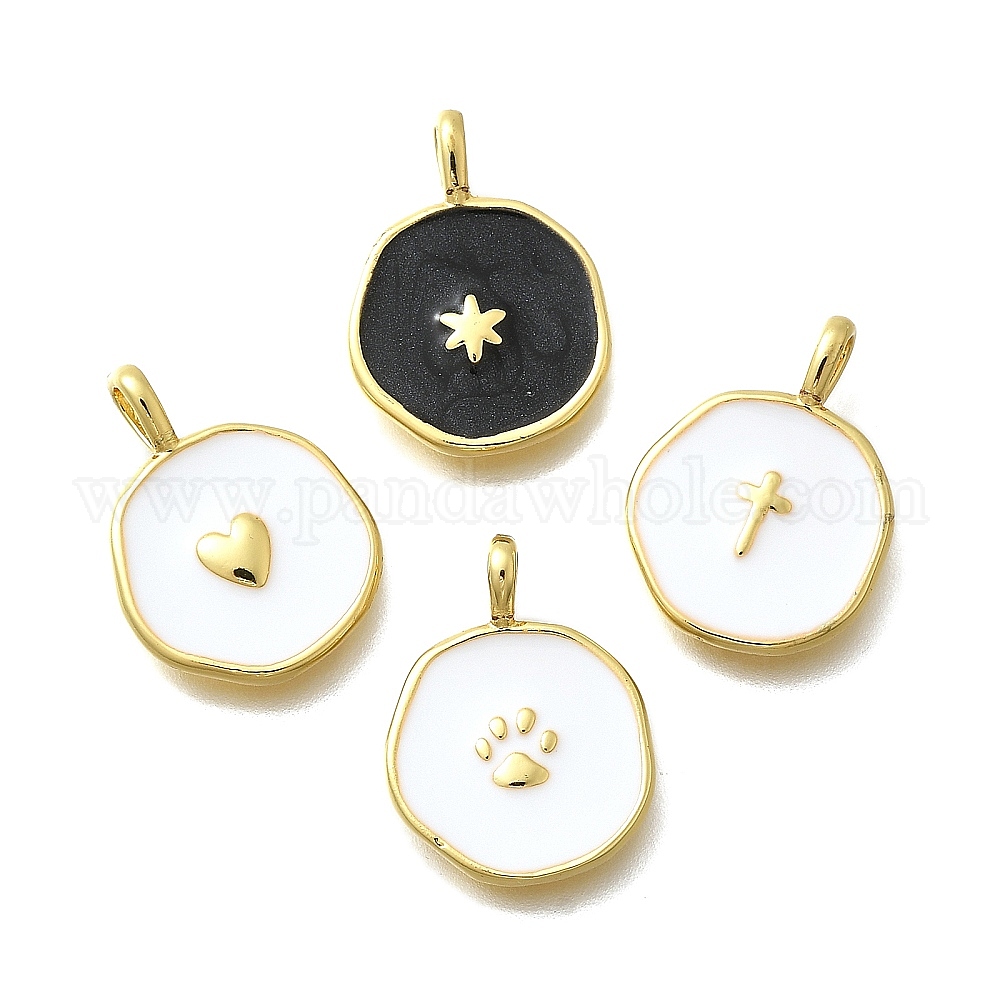 Латунь с эмалевыми подвесками, без свинца и без кадмия, реальный 18 k позолоченный, стойки покрытие, плоско-круглые