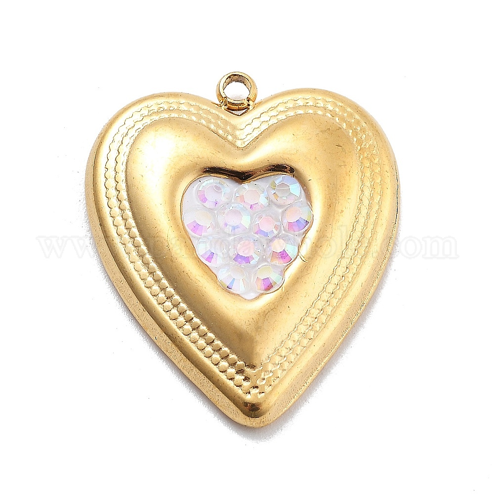 304 нержавеющей стальной эмали подвески, со стразами, вакуумное покрытие pvd, реальный 18 k позолоченный, шарма сердца