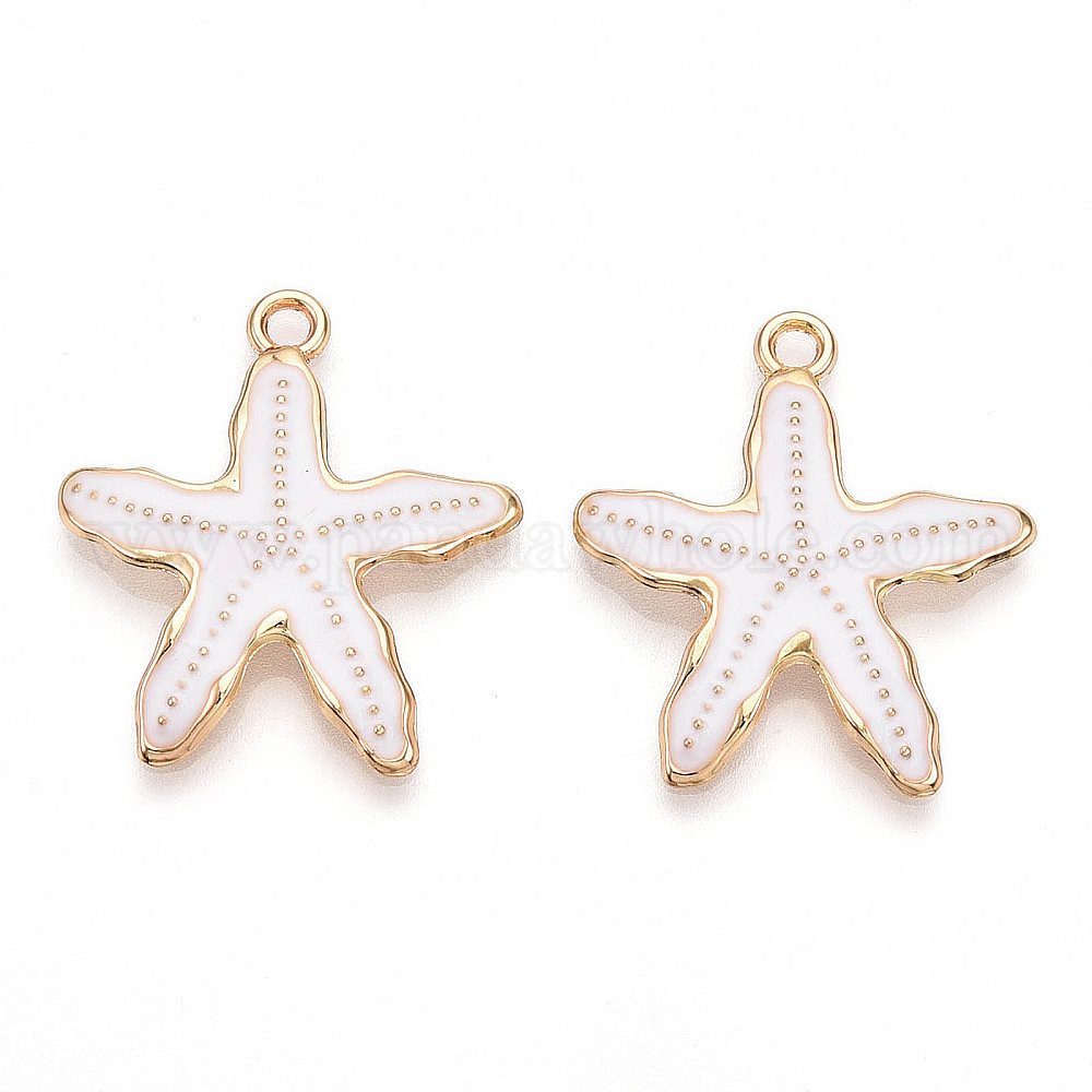• Белый Подвески из эмали и сплава, стойки покрытие, без кадмия, без никеля и без свинца, очарование морской звезды, золотые, белые, 29.7x26x3.3 мм, отверстие : 2 мм