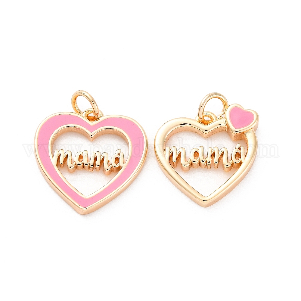 Латунные эмалевые подвески ко дню матери, без кадмия, без никеля и без свинца, с целью перехода в кольце, реальный 18 k позолоченный, сердце со словом "мама"