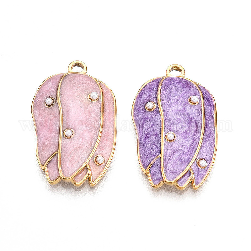 Ионное покрытие (ip) 304 подвески из нержавеющей стали с эмалью, с абс пластмассовой имитационной жемчужиной, , реальный 18 k позолоченный