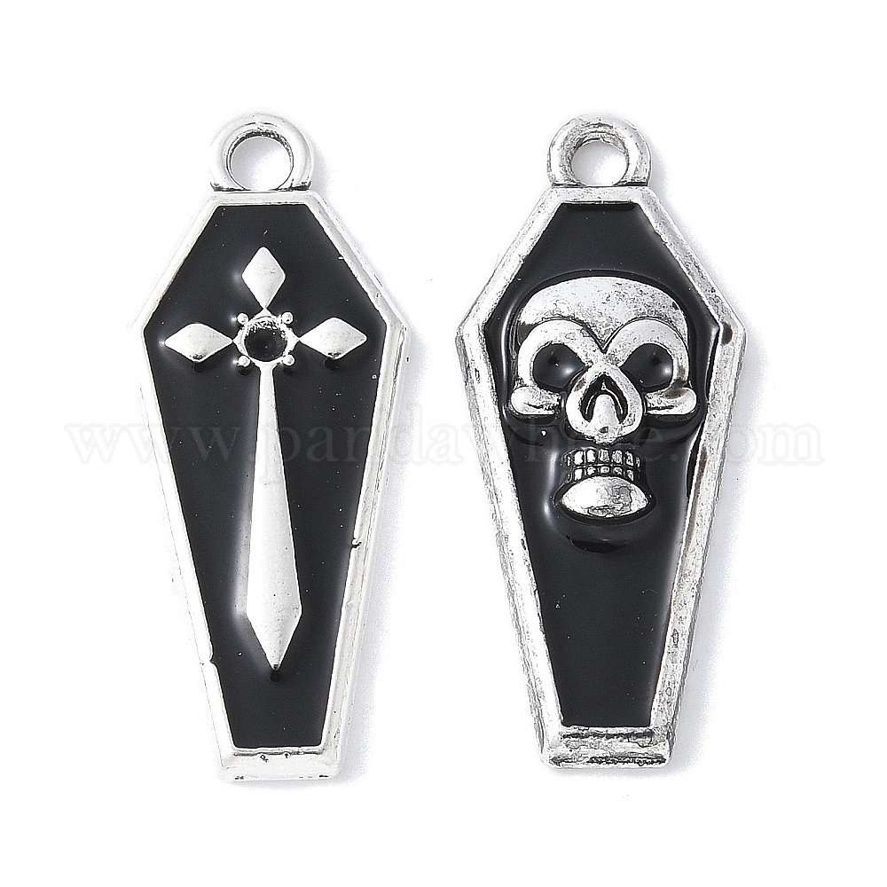Подвески из эмали и сплава, стойки покрытие, без кадмия, без никеля и без свинца, очарование гроба, античное серебро