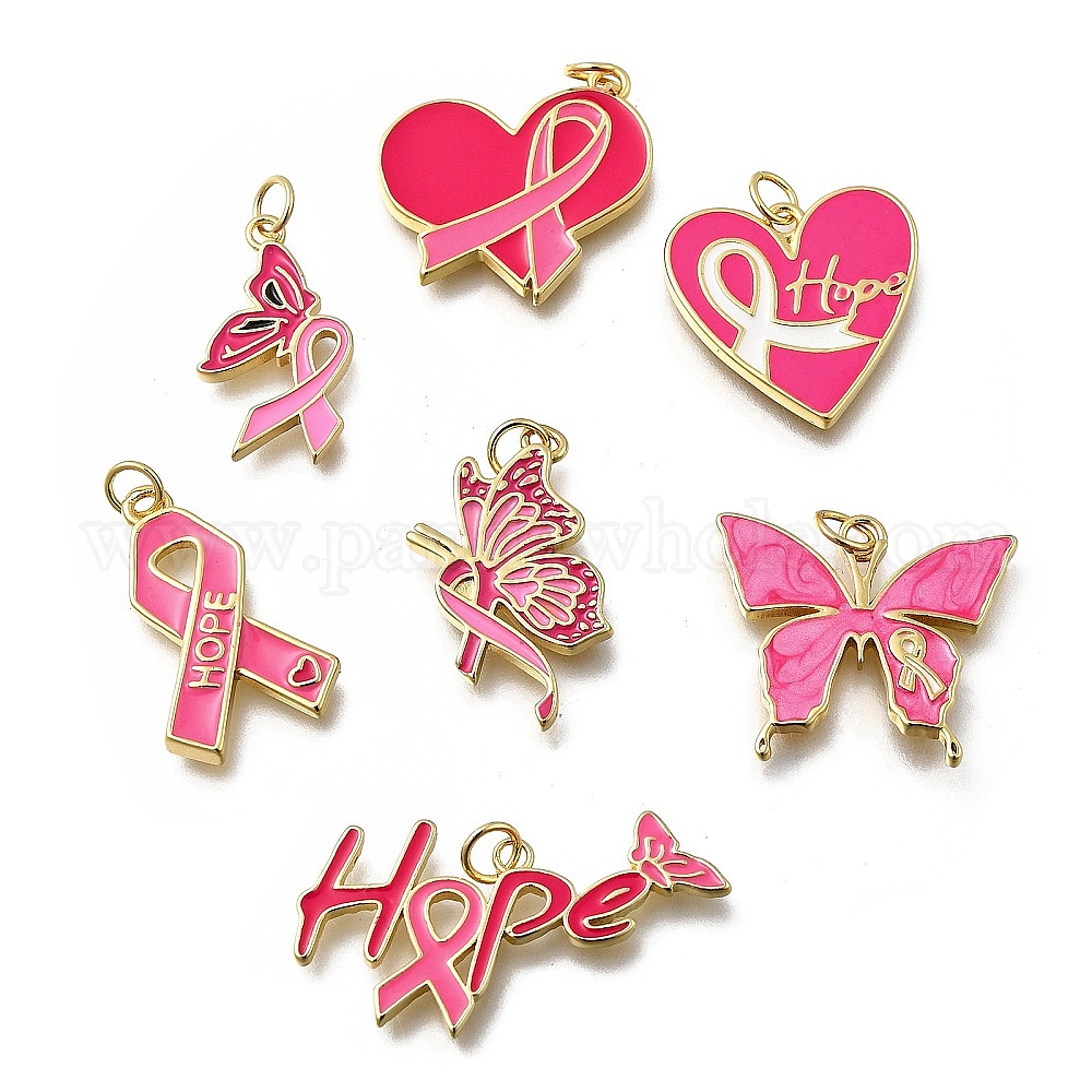 Октябрь рак груди розовая лента осведомленности латунные эмалевые подвески, с целью перехода в кольце, без кадмия и без свинца, долговечный, стойки покрытие, реальный 18 k позолоченный