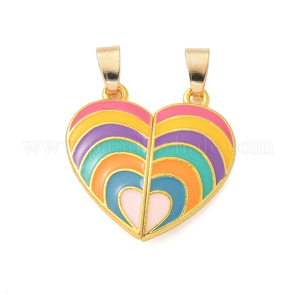 Эмали сплава сплит подвески, сердечная пара очарование, золотые, с магнитным
