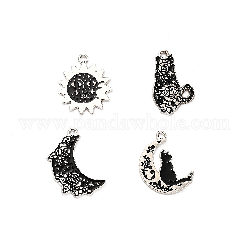Подвески из эмалевого сплава «солнце, луна, кошка», платина