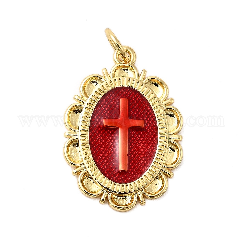 Латунь эмаль подвески, с целью перехода в кольце, без кадмия, без никеля и без свинца, овальные с поперечными прелести, реальный 18 k позолоченный