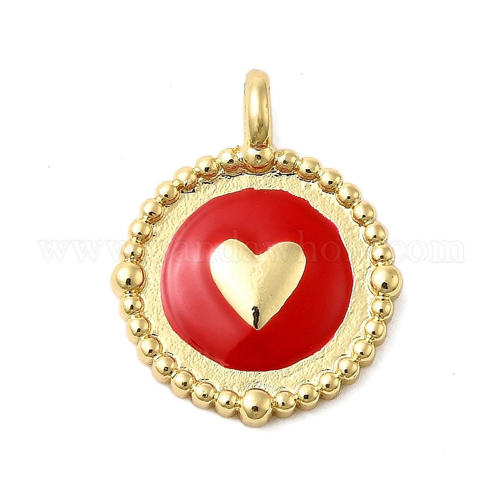 Латунь эмаль подвески, без кадмия, без никеля и без свинца, реальный 18 k позолоченный, плоский круглый с подвеской в виде сердца