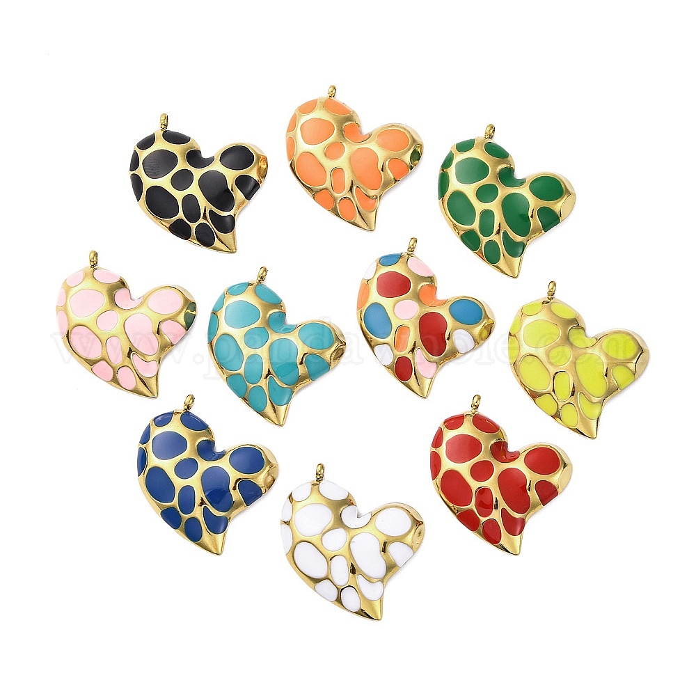 304 подвески из нержавеющей стали, с эмалью, шарма сердца, золотые