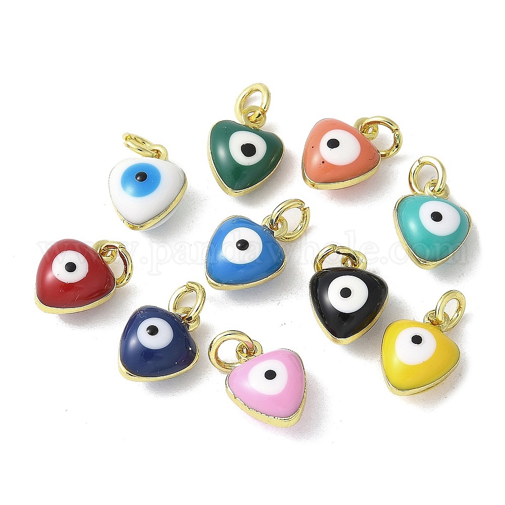 Латунь эмаль прелести, с целью перехода в кольце, без свинца и без кадмия, реальный 18 k позолоченный, сердце с оберегом от сглаза