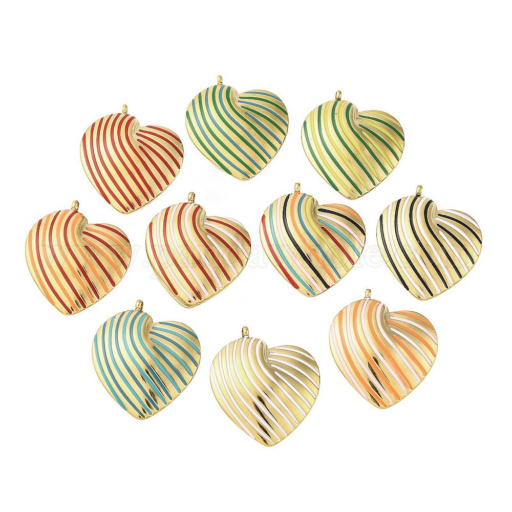 304 подвески из нержавеющей стали, с эмалью, полосатый сердечный брелок, золотые