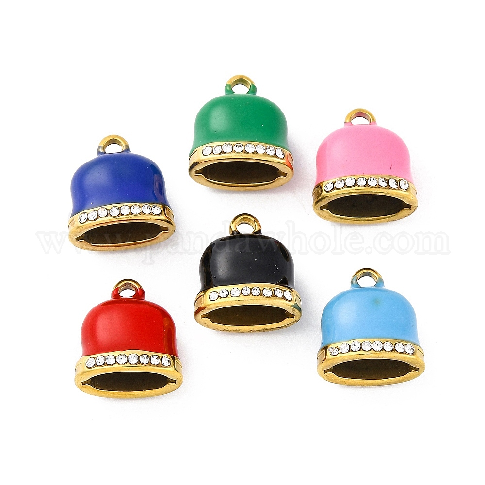 304 подвеска на конец шнура из эмалированной нержавеющей стали, ионное покрытие (ip), реальный 18 k позолоченный, со стразами