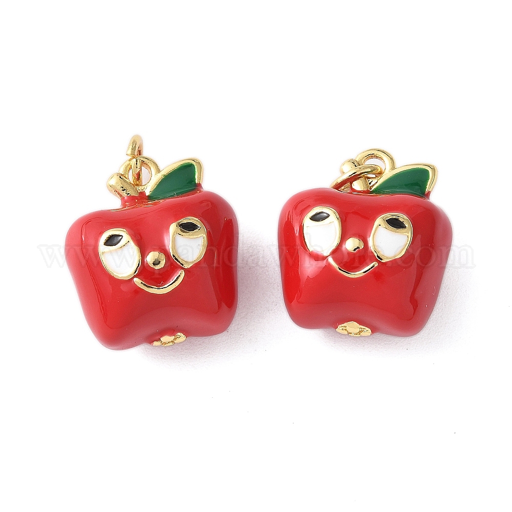Латунь эмаль подвески, с целью перехода в кольце, долговечный, без кадмия и без свинца, стойки покрытие, яблочный шарм, реальный 18 k позолоченный