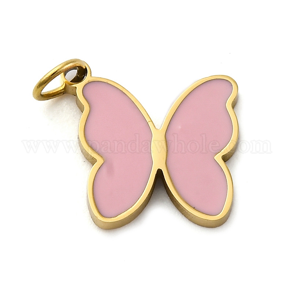 304 из нержавеющей стали шармы эмали, с целью перехода в кольце, подвески в форме бабочки, ионное покрытие (ip), реальный 18 k позолоченный