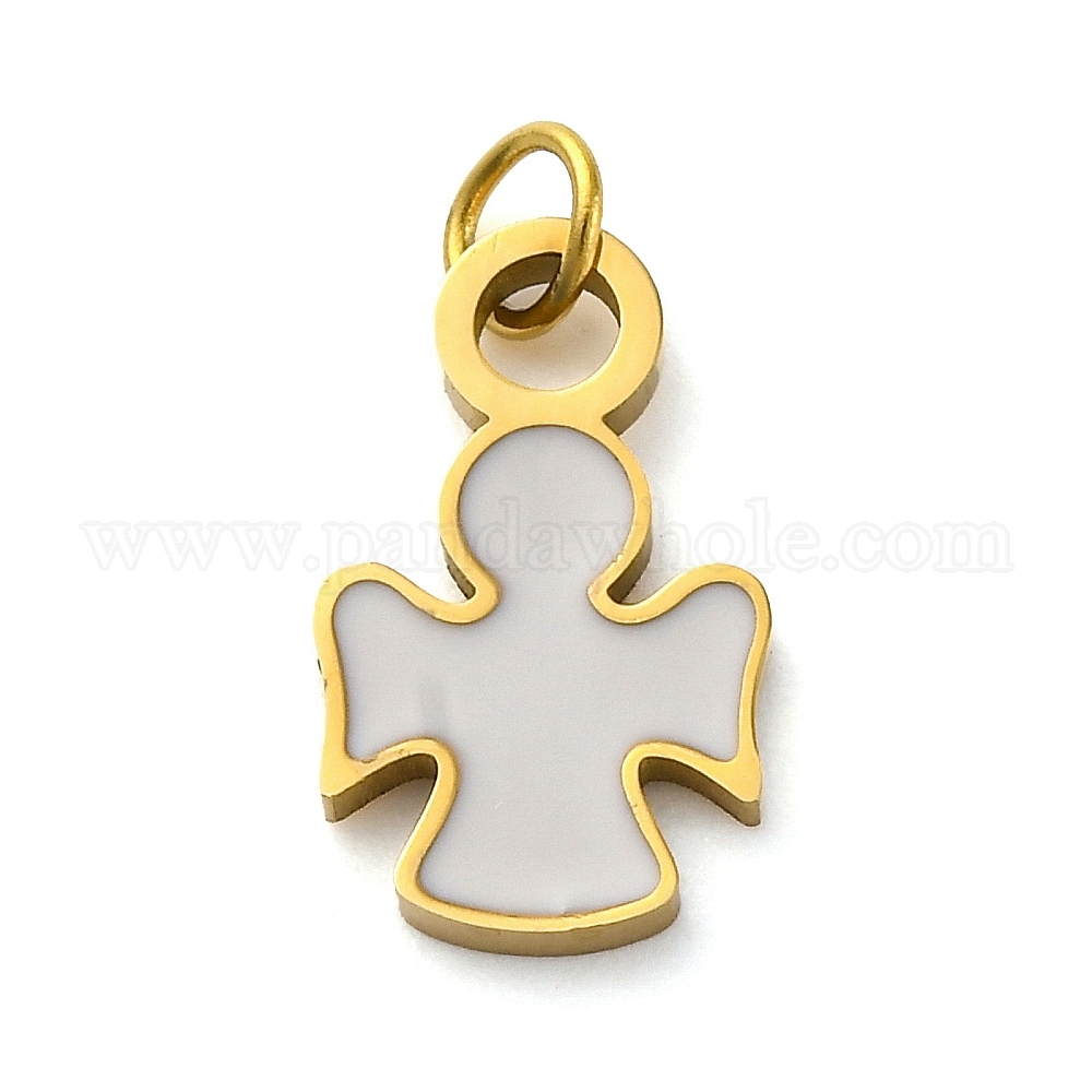 304 из нержавеющей стали шармы эмали, с целью перехода в кольце, ангельские прелести, ионное покрытие (ip), реальный 18 k позолоченный