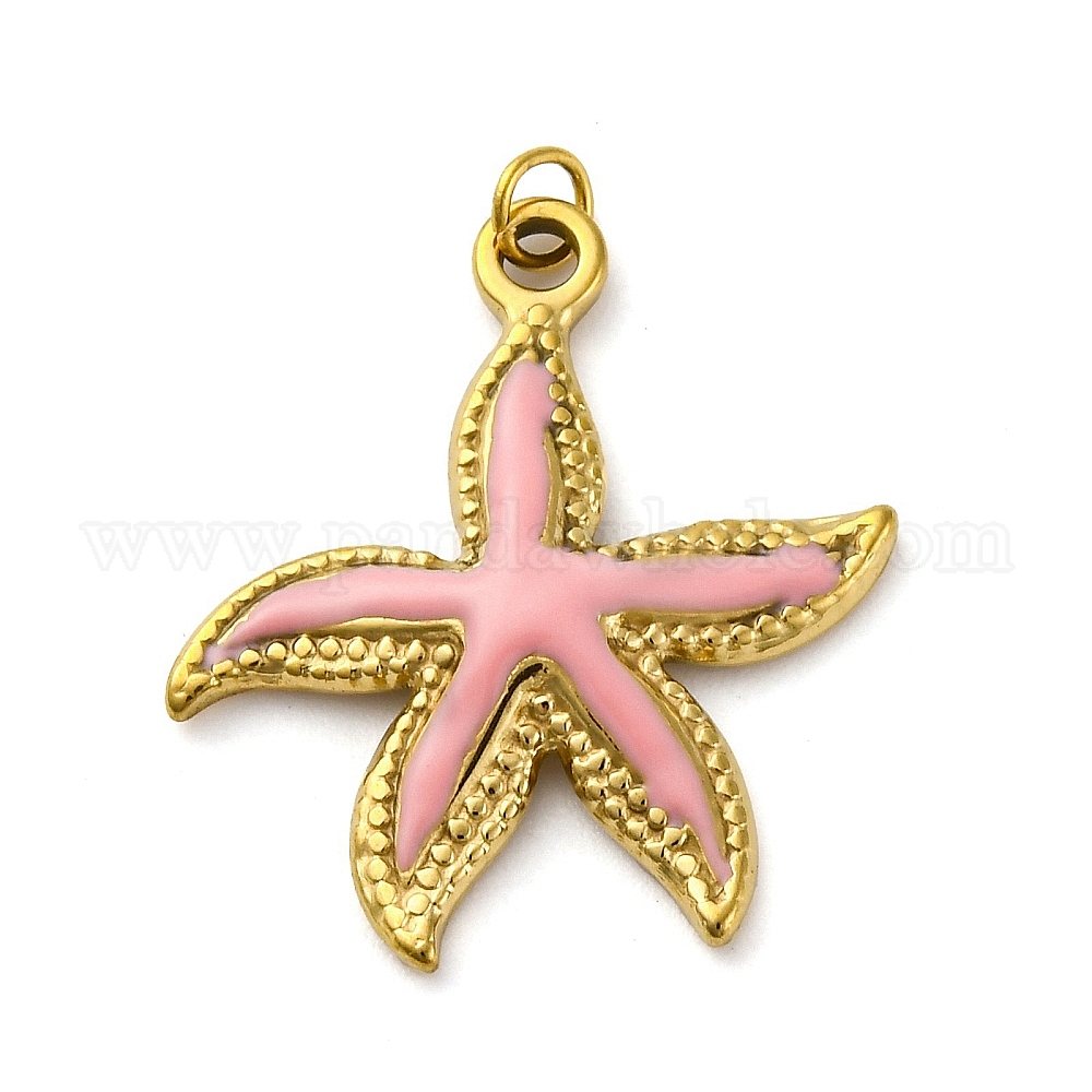 304 нержавеющей стальной эмали подвески, с целью перехода в кольце, очарование морской звезды, реальный 18 k позолоченный, ионное покрытие (ip)