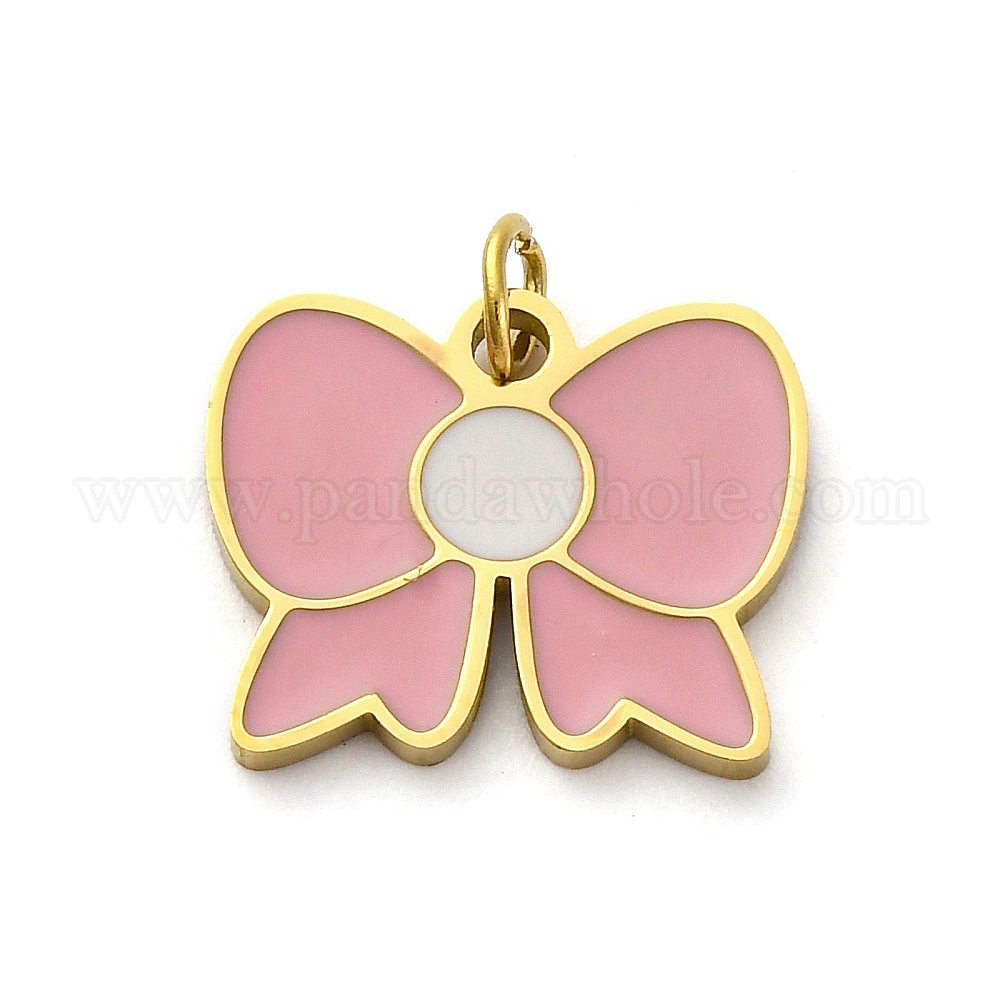304 из нержавеющей стали шармы эмали, с целью перехода в кольце, очарование бантом, реальный 18 k позолоченный, ионное покрытие (ip)