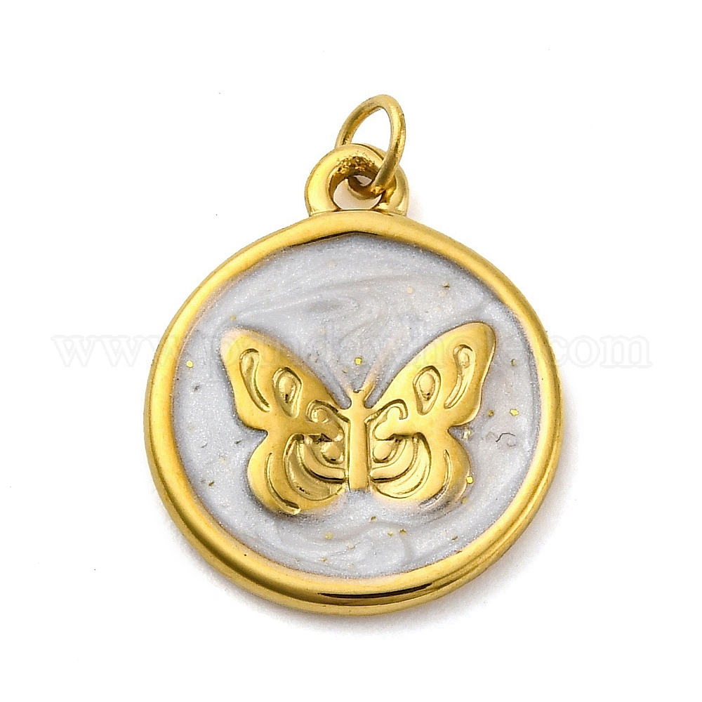 304 нержавеющей стальной эмали подвески, с целью перехода в кольце, ионное покрытие (ip), плоский круглый с подвеской в виде бабочки, реальный 18 k позолоченный (032E3S)