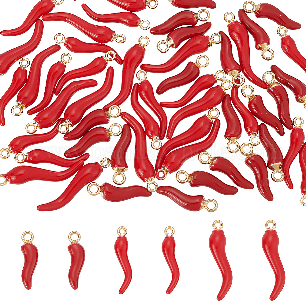 50 шт 3 стили подвески из сплава эмали, рог изобилия / итальянский рог корничелло амулеты, золотые