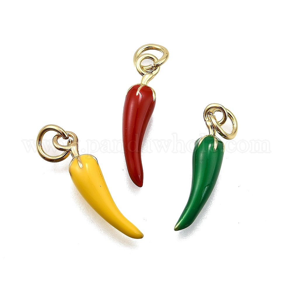 Латунь эмаль подвески, с прыжковых колец, долговечный, без свинца и без кадмия, стойки покрытие, чили прелести, реальный 18 k позолоченный