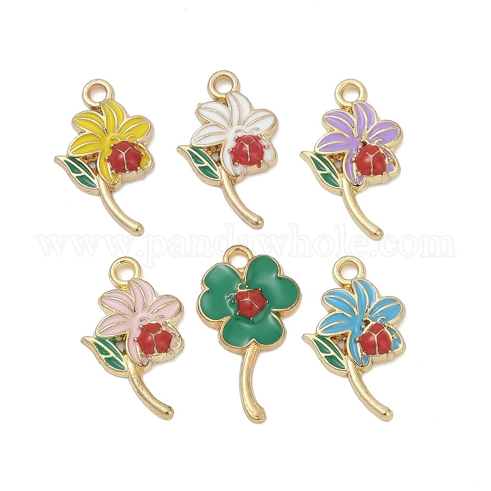 Подвески из эмали и сплава, цветок с подвеской в виде божьей коровки, золотые