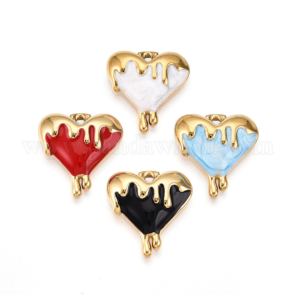 • Красный 304 подвески из нержавеющей стали, с эмалью, очарование тающего сердца, ионное покрытие (ip), реальный 18 k позолоченный, красные, 17.5x16.5x3.5 мм, отверстие : 1.6 мм