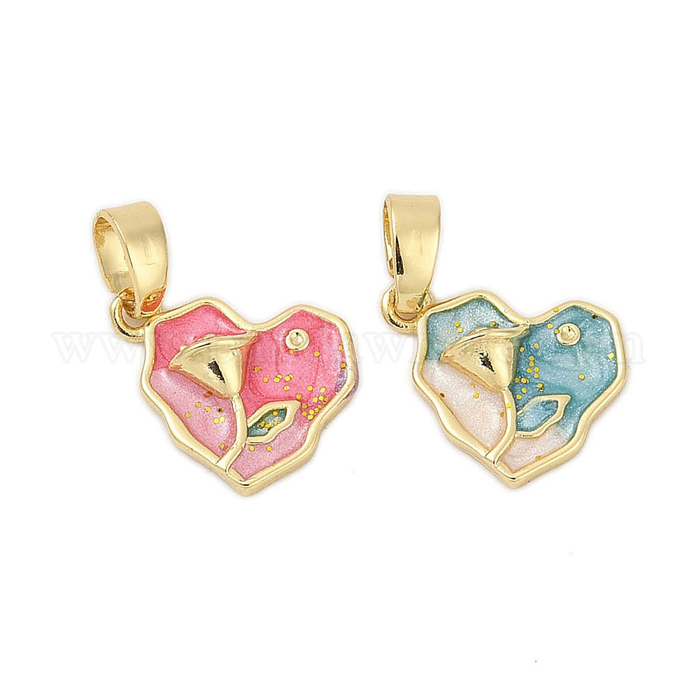Латунь эмаль подвески, сердце с цветочными подвесками, стойки покрытие, прочное покрытие, без кадмия и без свинца, реальный 18 k позолоченный