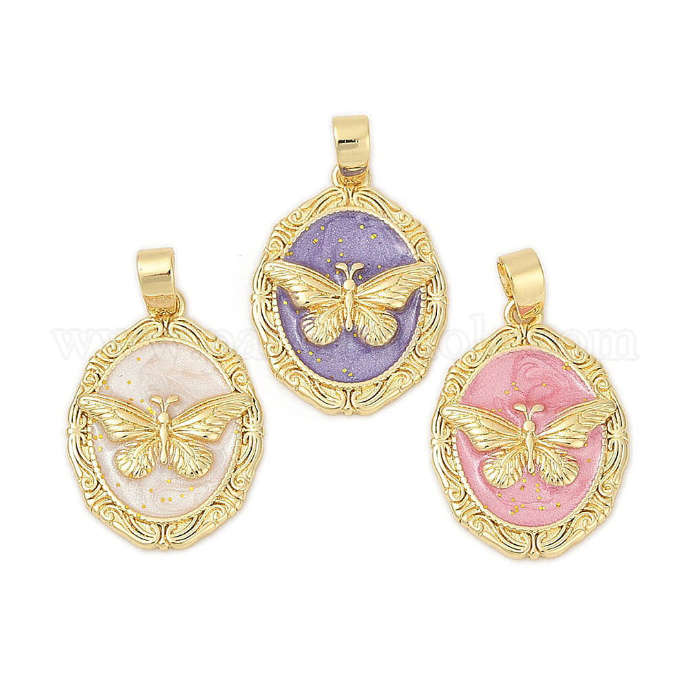 Латунь эмаль подвески, овал с подвесками в виде бабочек, стойки покрытие, прочное покрытие, без кадмия и без свинца, реальный 18 k позолоченный