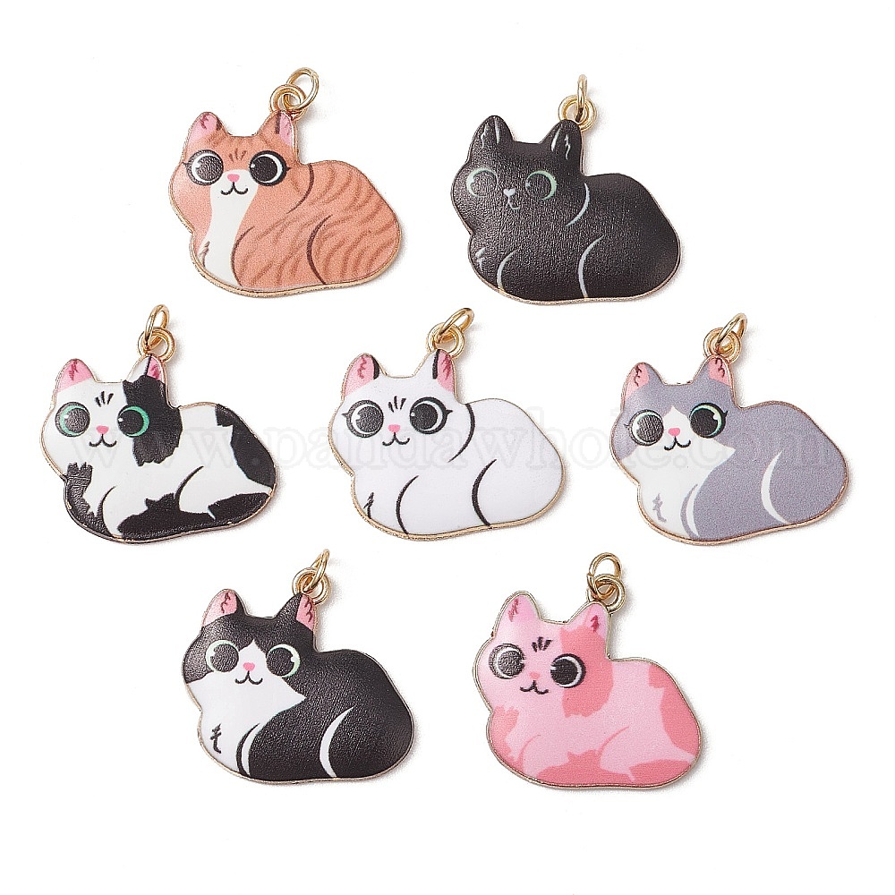 Подвески из эмали и сплава, с открытыми пружинными кольцами из нержавеющей стали 304, очарование в форме кошки, золотые
