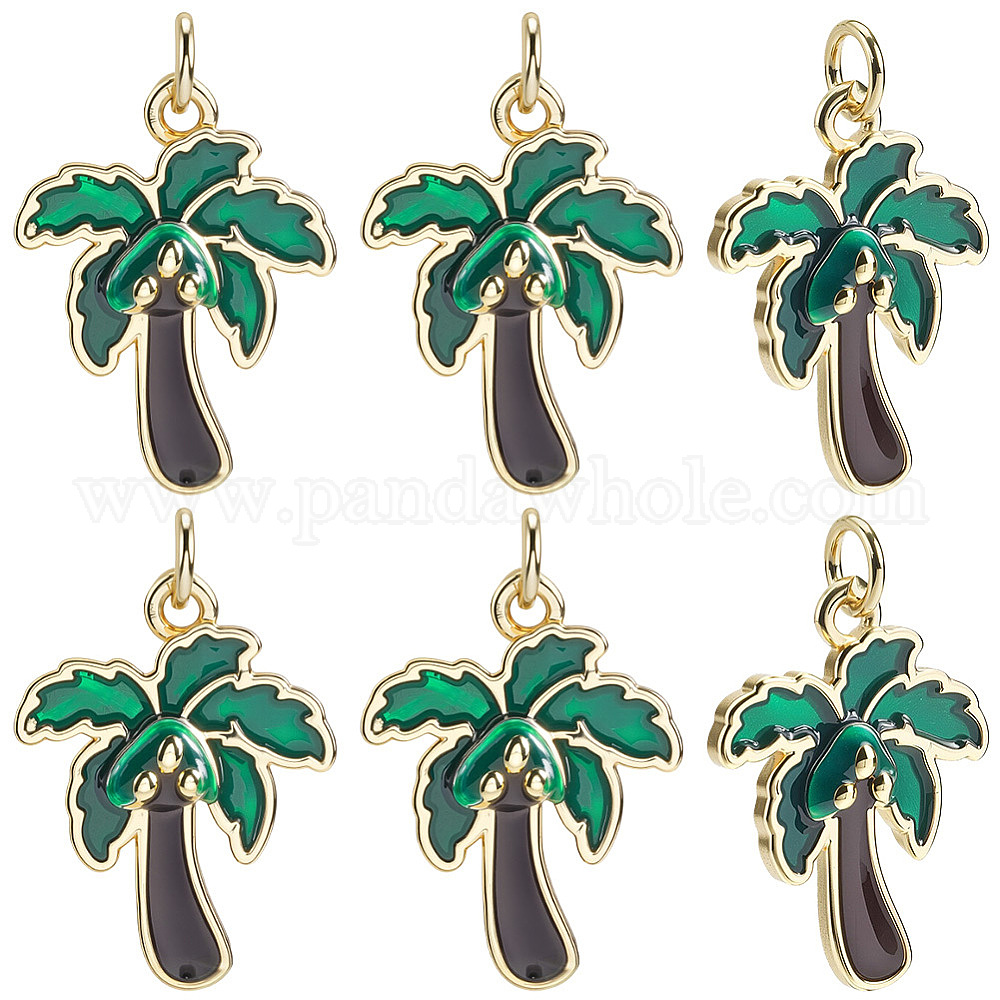 6 кулоны латунные эмалевые шт., с целью перехода в кольце, очарование кокосового дерева, стойки покрытие, прочное покрытие, без кадмия и без свинца