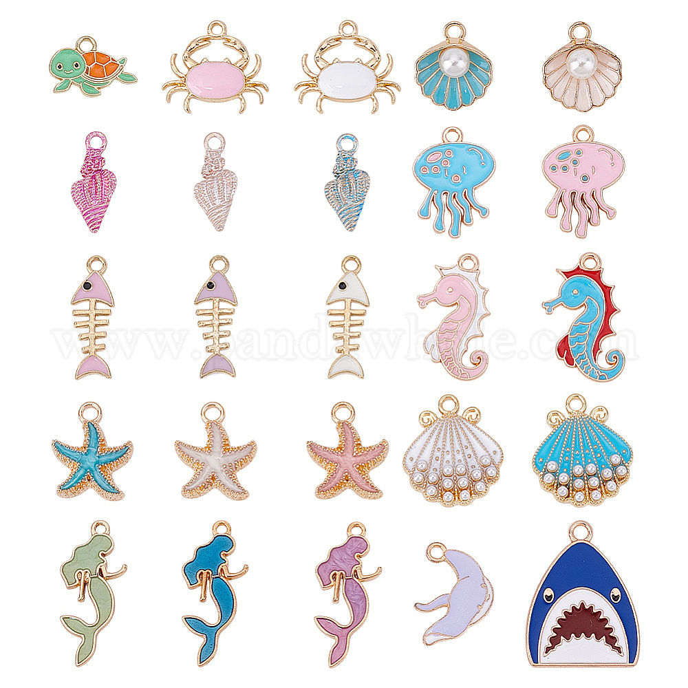 50 шт. 25 стили, подвески с эмалью из сплава на тему океана, золотые