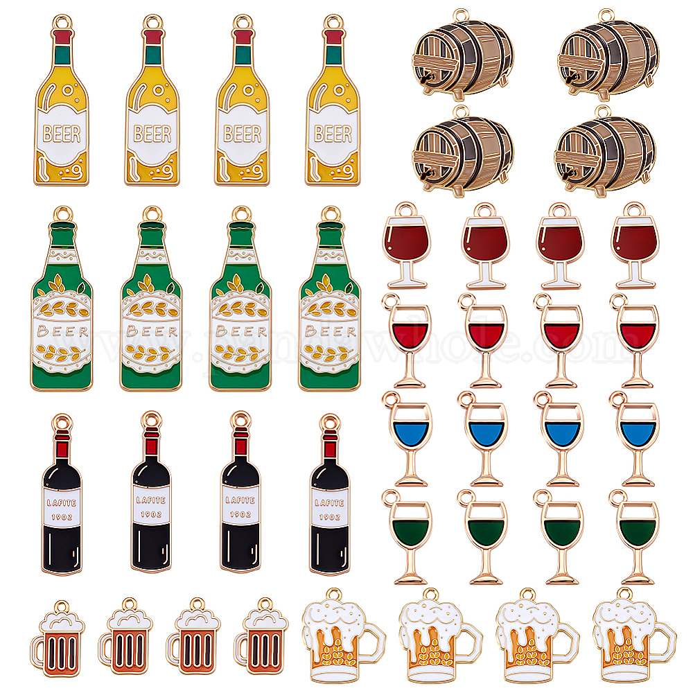 40 шт 10 стили подвески из сплава эмали, подвеска в виде бутылки вина, пивной бочки и бутылки красного вина