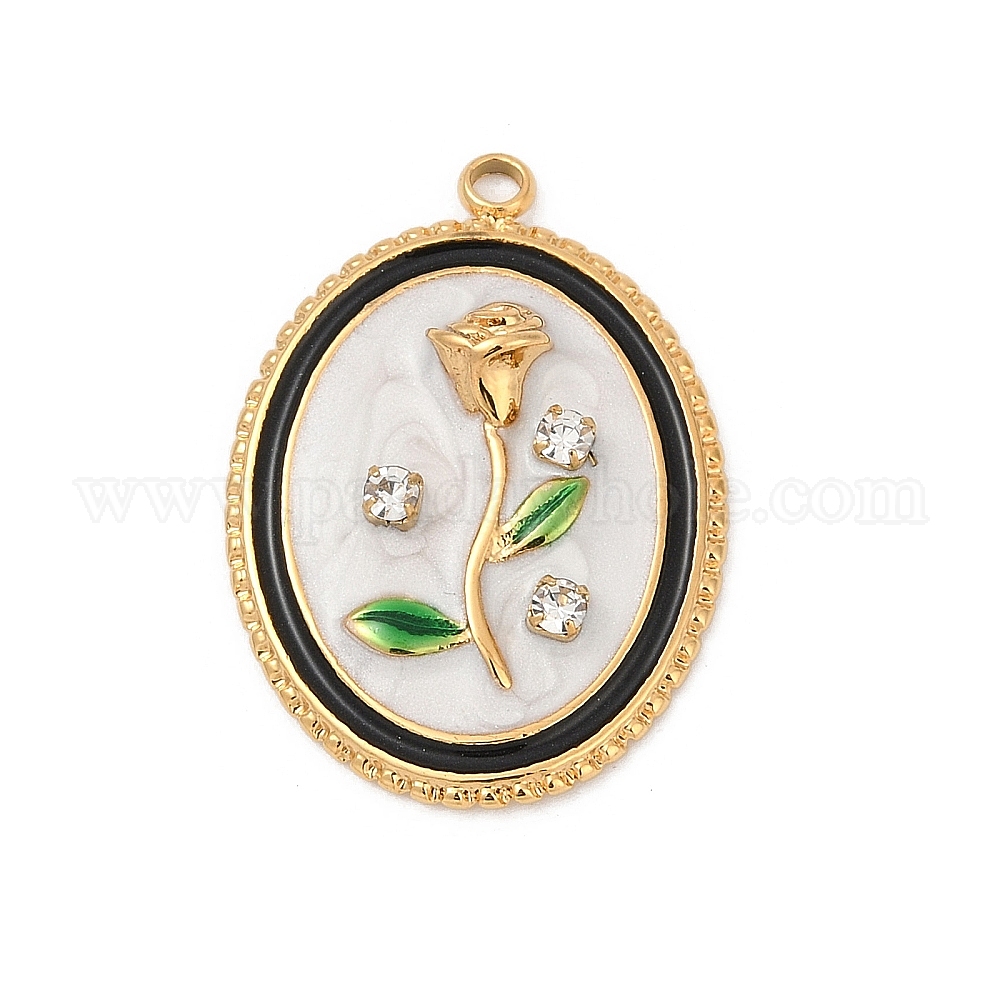 304 нержавеющей стальной эмали подвески, со стразами, ионное покрытие (ip), овал с подвеской в виде розы