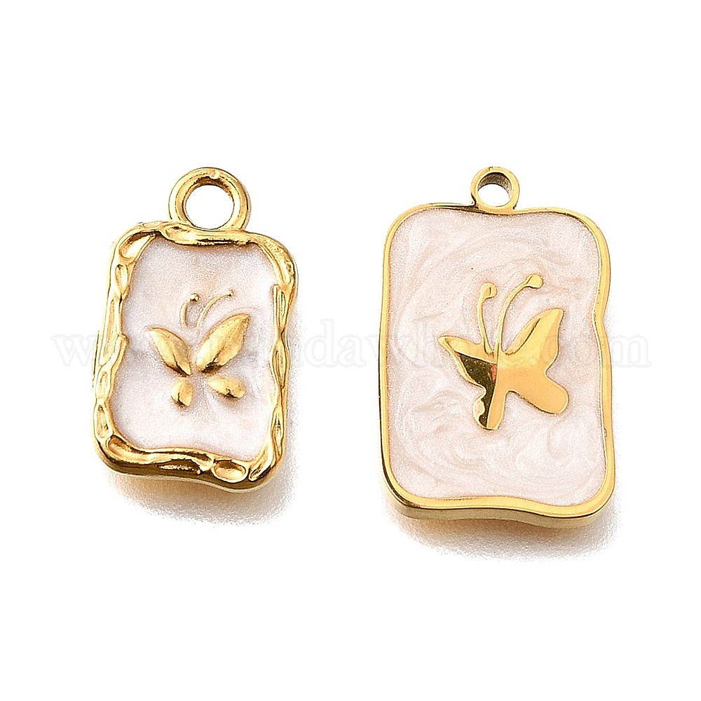 304 подвески из нержавеющей стали, с эмалью, прямоугольник с подвесками в виде бабочек, золотые