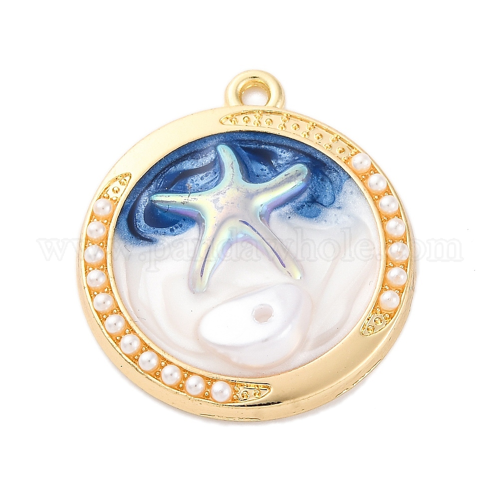 Подвески из эмали и сплава, с ABS имитации жемчуга, без кадмия, без никеля и без свинца, стойки покрытие, плоский фон с подвеской в виде морской звезды, золотые