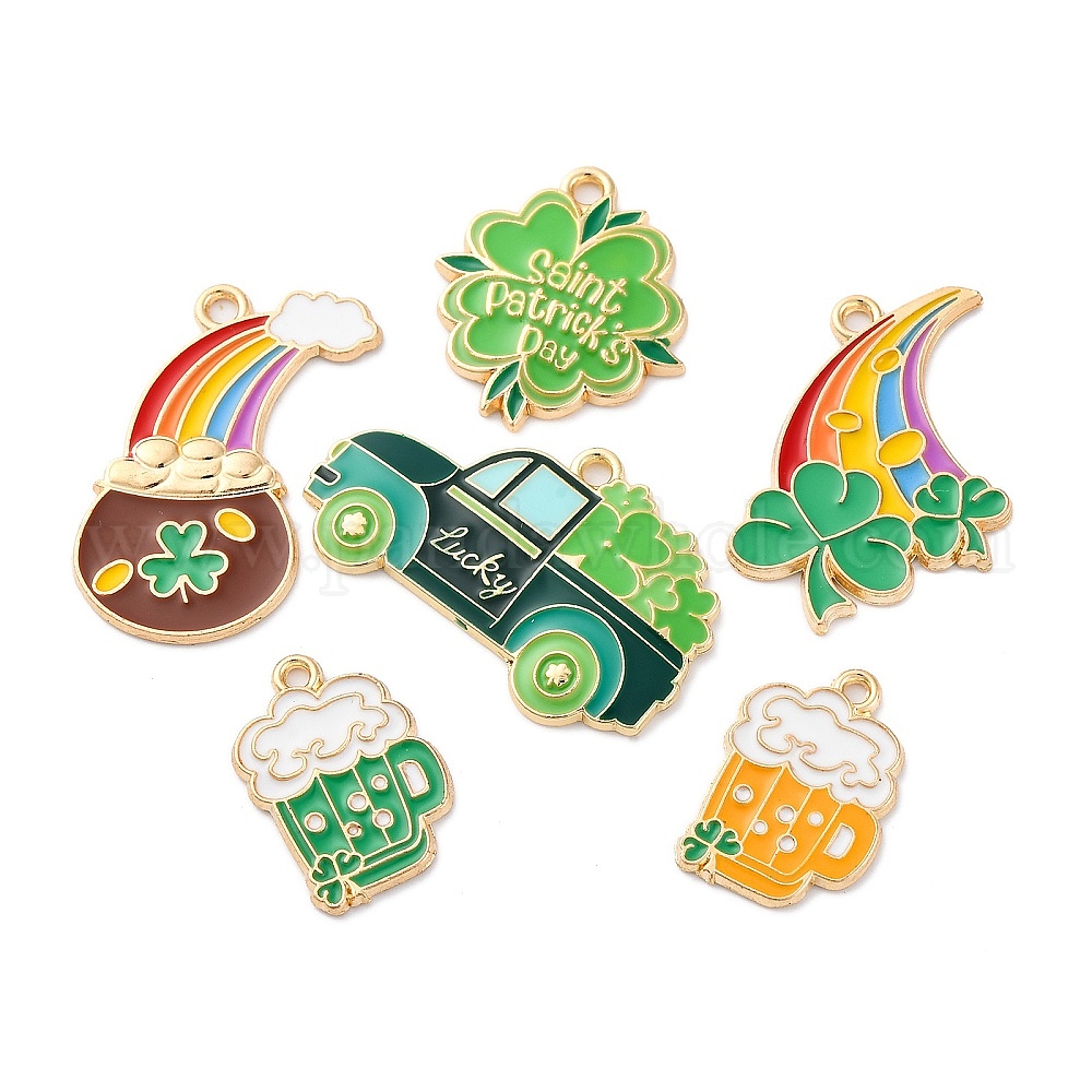 Подвески из сплава с эмалью ко Дню Святого Патрика, без кадмия, без никеля и без свинца, стойки покрытие, золотые, кружка пива, клевер и радуга (032ZB8)