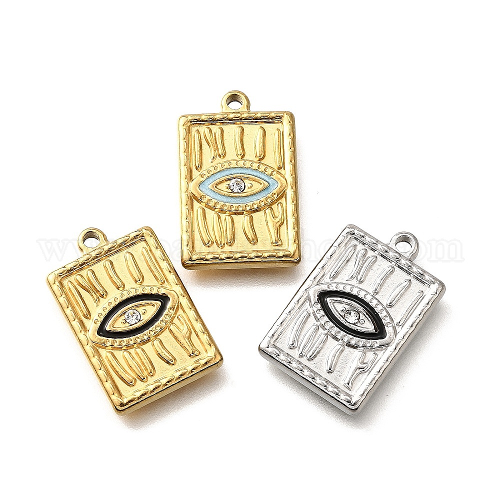 304 подвески из нержавеющей стали, с стразами и эмалью, прямоугольник с шармом в виде глаз