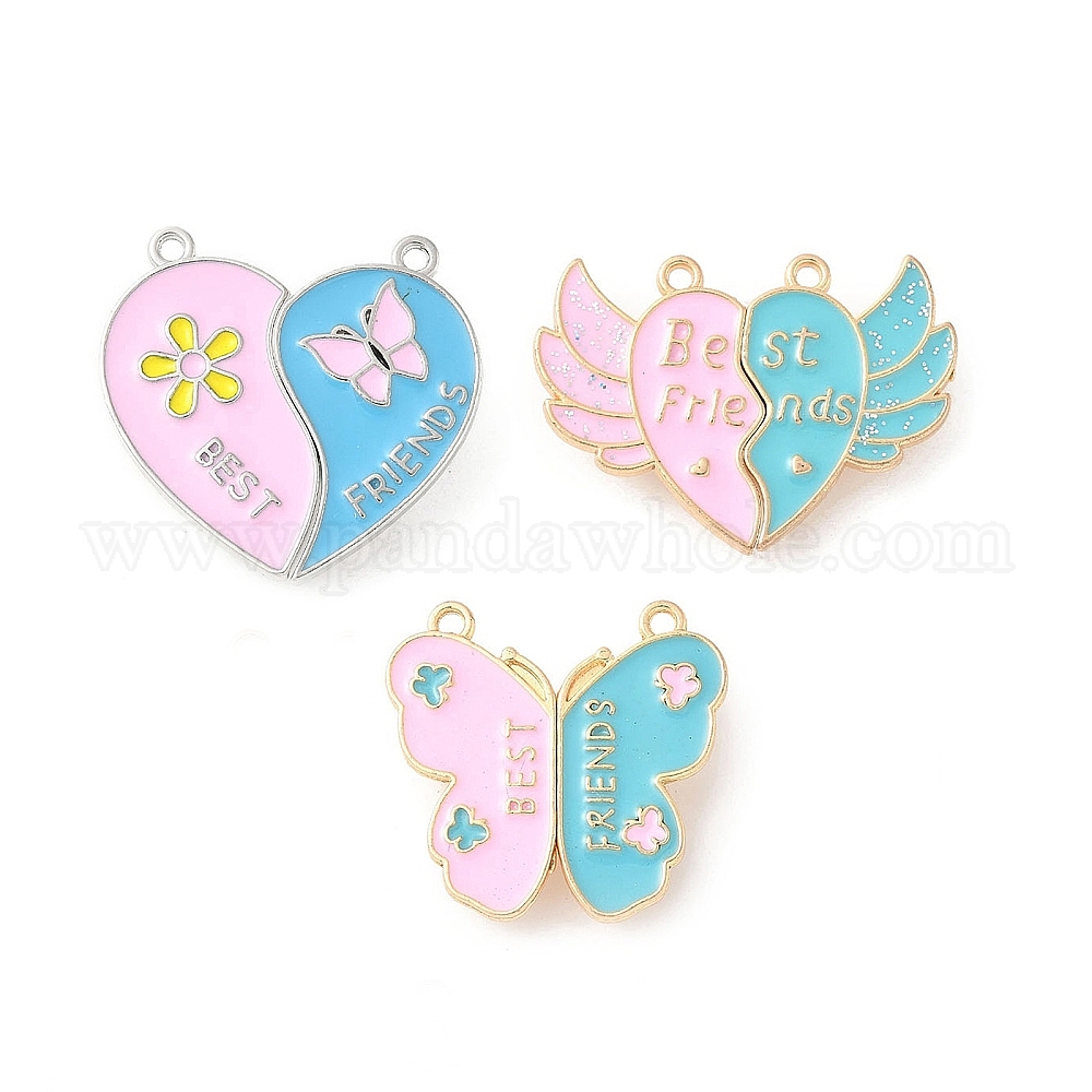 Сплав жемчужно-розовый и небесно-голубой эмалевые разделенные подвески, сердце бабочка лучший друг талисманы, с магнитным