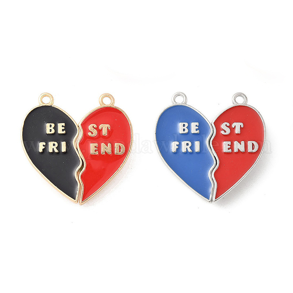 Эмали сплава сплит подвески, сердечки лучший друг талисманы, с магнитным