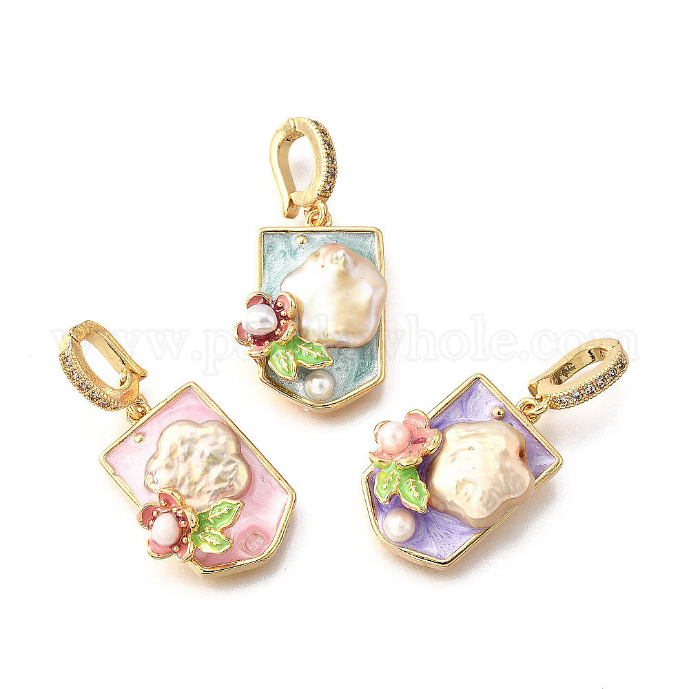 Латунные подвески с микропаве из кубического циркония и эмали, прямоугольник с цветочными подвесками, с натуральным пресноводным жемчугом, реальный 18 k позолоченный