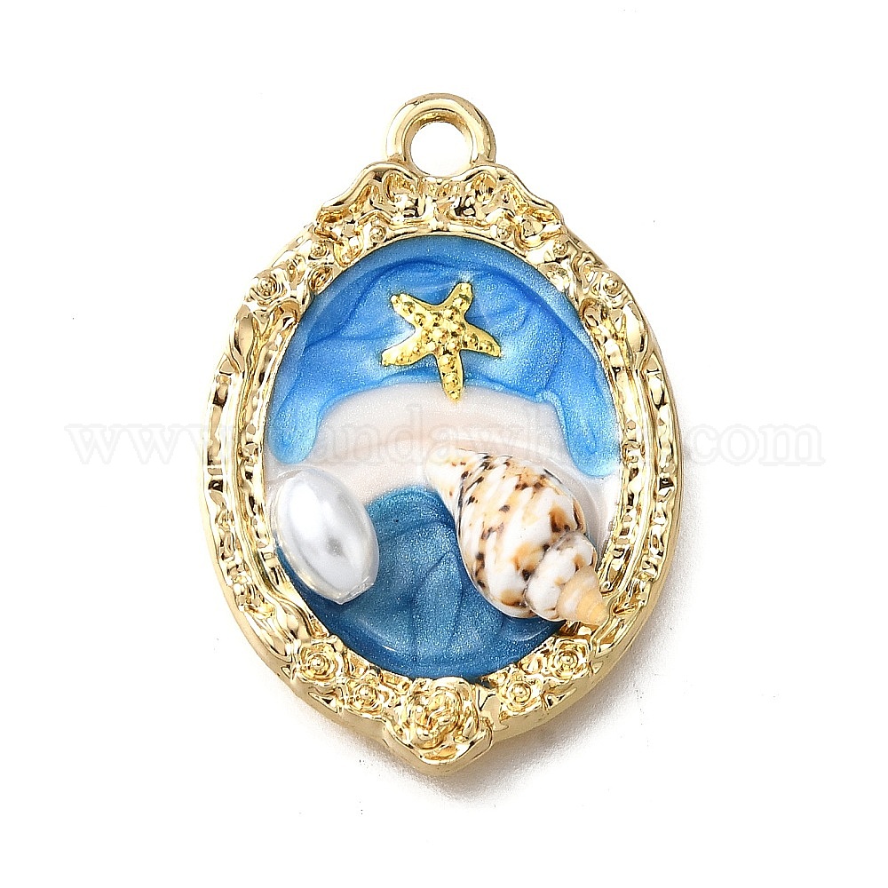 Подвески из эмали и сплава, с имитацией жемчужины и ракушки из АБС-пластика, овальный шарм, стойки покрытие, долговечный, без свинца, без кадмии и без никеля