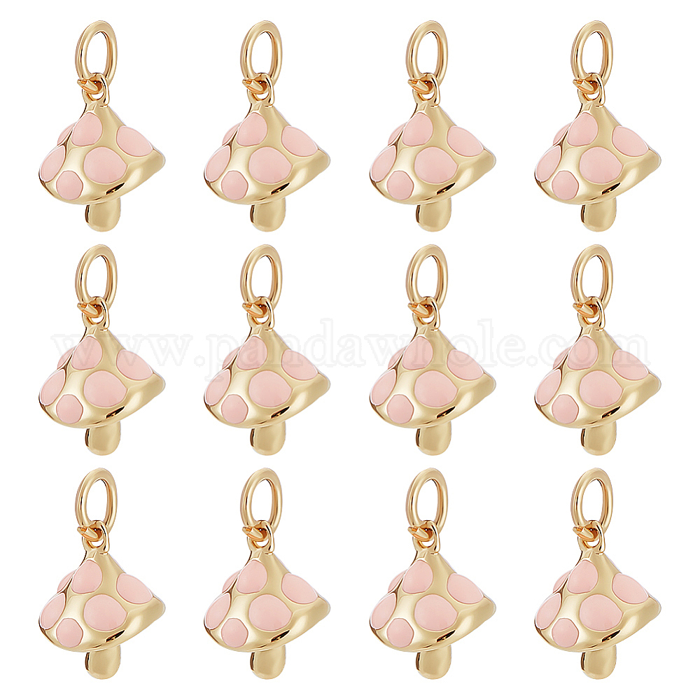 • Настоящее золото 18K 12подвески из латуни с эмалью, гриб, без кадмия, без никеля и без свинца, реальный 18 k позолоченный, 12x10x8.5 мм, отверстие : 3 мм