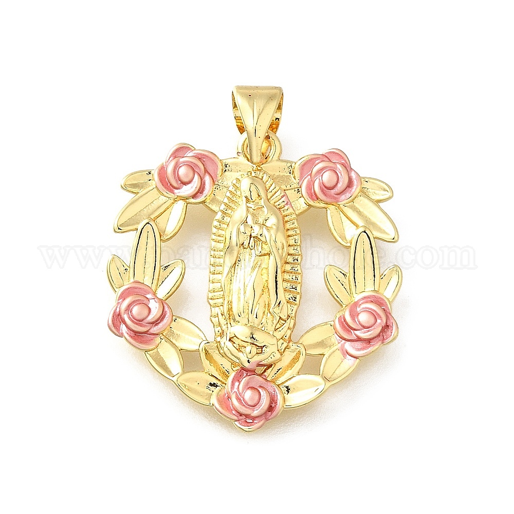 Латунь эмаль подвески, Дева Мария с цветочным амулетом, стойки покрытие, долговечный, без свинца и без кадмия, реальный 18 k позолоченный