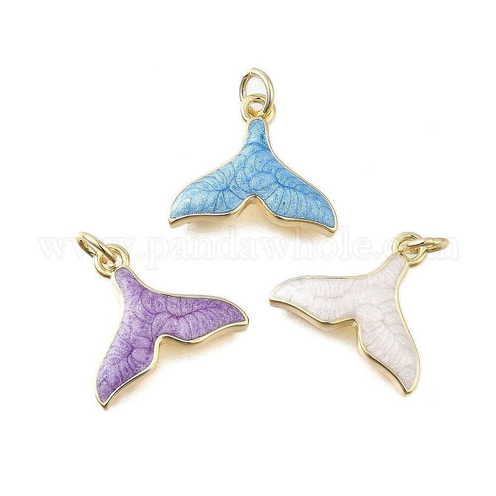 Латунь эмаль подвески, прелести рыбий хвост, без свинца и без кадмия, стойки покрытие, долговечный, с целью перехода в кольце, реальный 18 k позолоченный